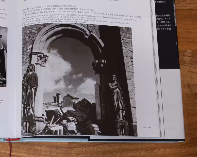 ⬆︎ _l'entrata sud della Cattedrale di Urakami a Nagasaki. Foto dell'ottobre 1945 di Shigeo Hayashi_