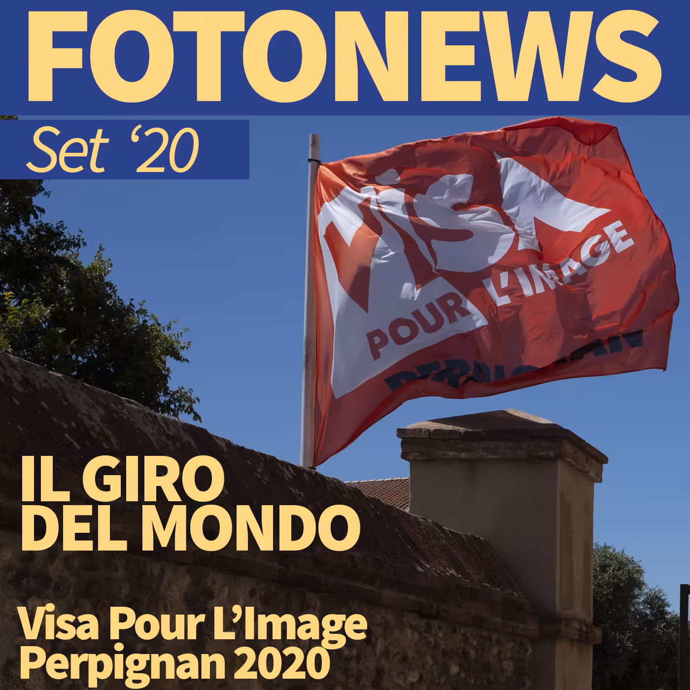 La copertina del podcast ha una mia foto della bandiera del _Visa pour l'image_ che sventola nel cortile dell'_eglise des dominicains_.