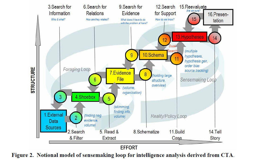 - URL: [Pirolli & Card (2005). The sensemaking process and leverage points for analyst technology as identified through cognitive task analysis. Proceedings of international conference on intelligence analysis](undefined)