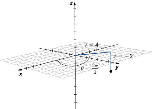 - In the cylindrical coordinate system , a point in space is represented by the ordered triple (r,θ,z),(𝑟,θ,𝑧), where (r,θ)(𝑟,θ) represents the polar coordinates of the point’s projection in the xy𝑥𝑦-plane and _z_ represents the point’s projection onto the z𝑧-axis.