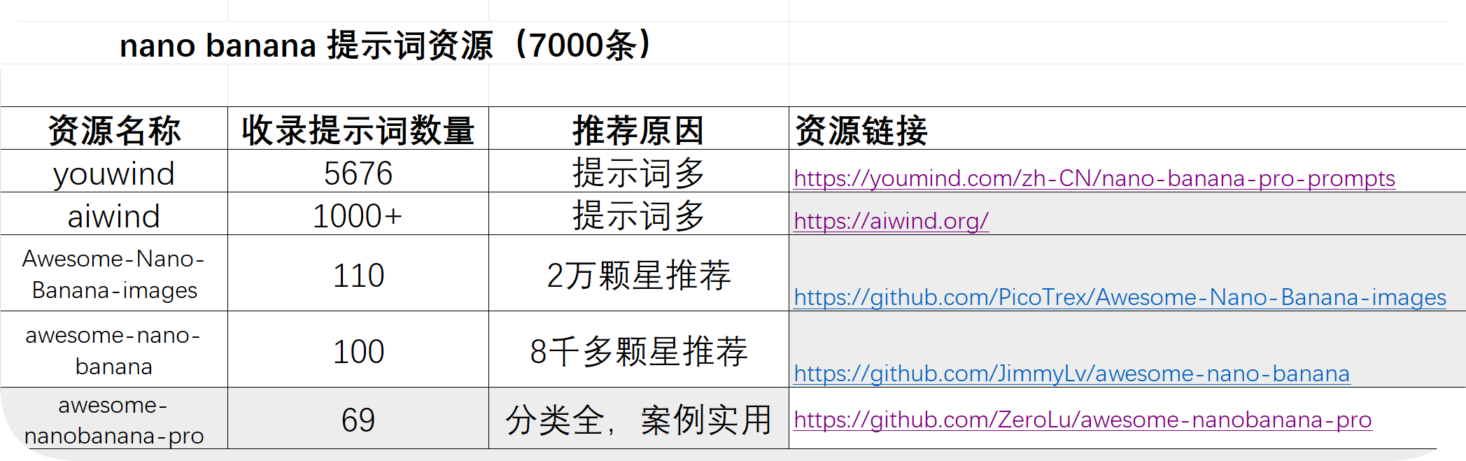 | youwind | 5676 | 提示词多 | [https://youmind.com/zh-CN/nano-banana-pro-prompts](https://youmind.com/zh-CN/nano-banana-pro-prompts) |