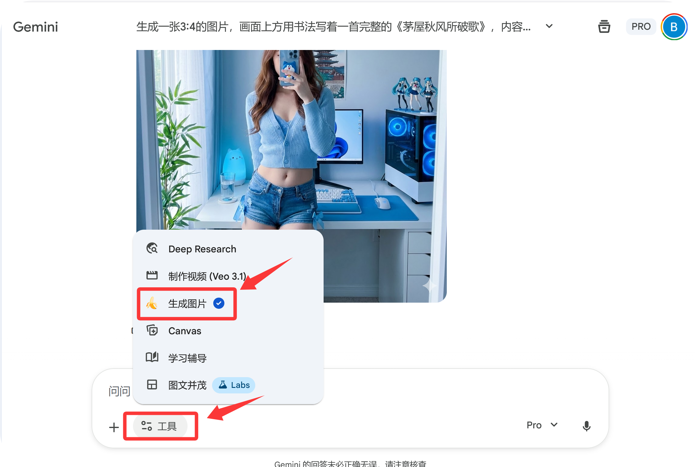 进入Gemini官网,点击**「工具」**→ 选择**「生成图片」**,就能开始创作啦!